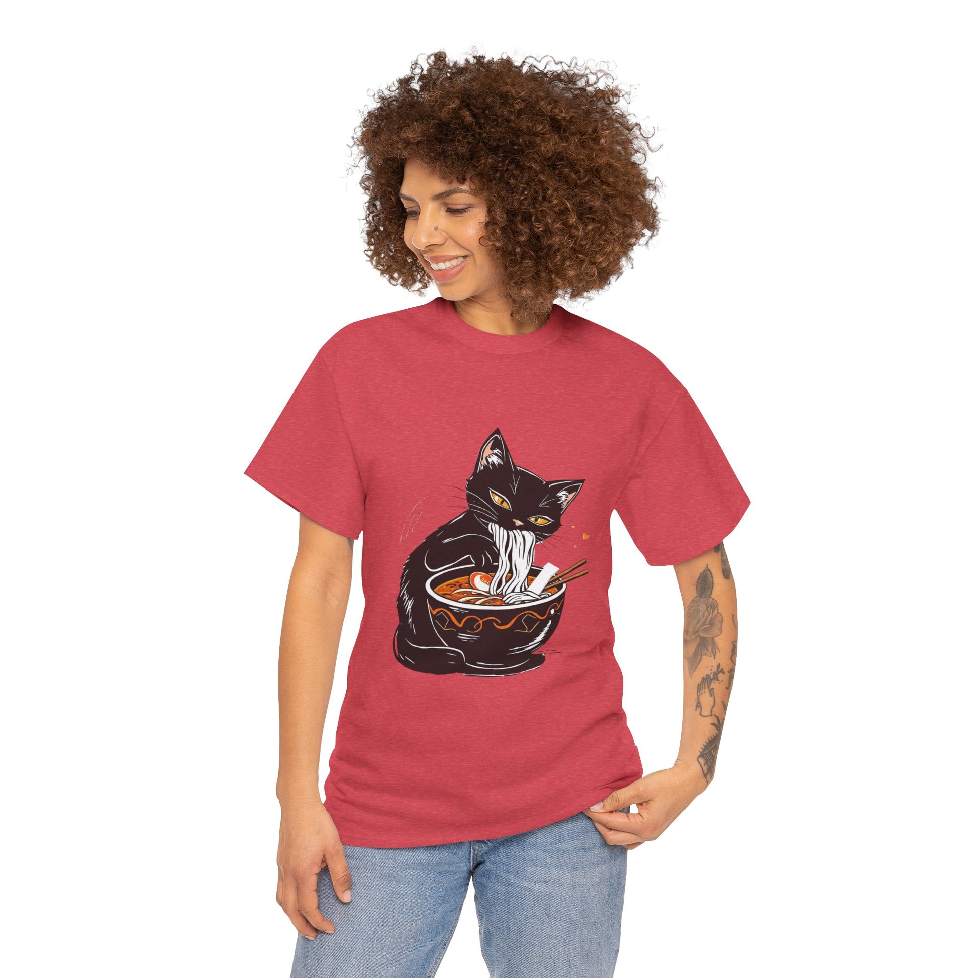 Introducing our stylish Unisex Heavy Cotton Tee, perfect for the cat lover and foodie at heart! This playful shirt showcases an adorable feline enjoying a bowl of noodles, bringing a fun vibe to your wardrobe. Ideal for casual outings, cozy gatherings, or just lounging at home, this tee is a must-have for anyone looking to express their unique personality. Whether you're celebrating a birthday, attending a casual get-together, or just want to treat yourself, this shirt fits the occasion beautifully. It's suitable for adults of all ages, making it a lovely gift for friends and family who appreciate quirky designs and comfort.