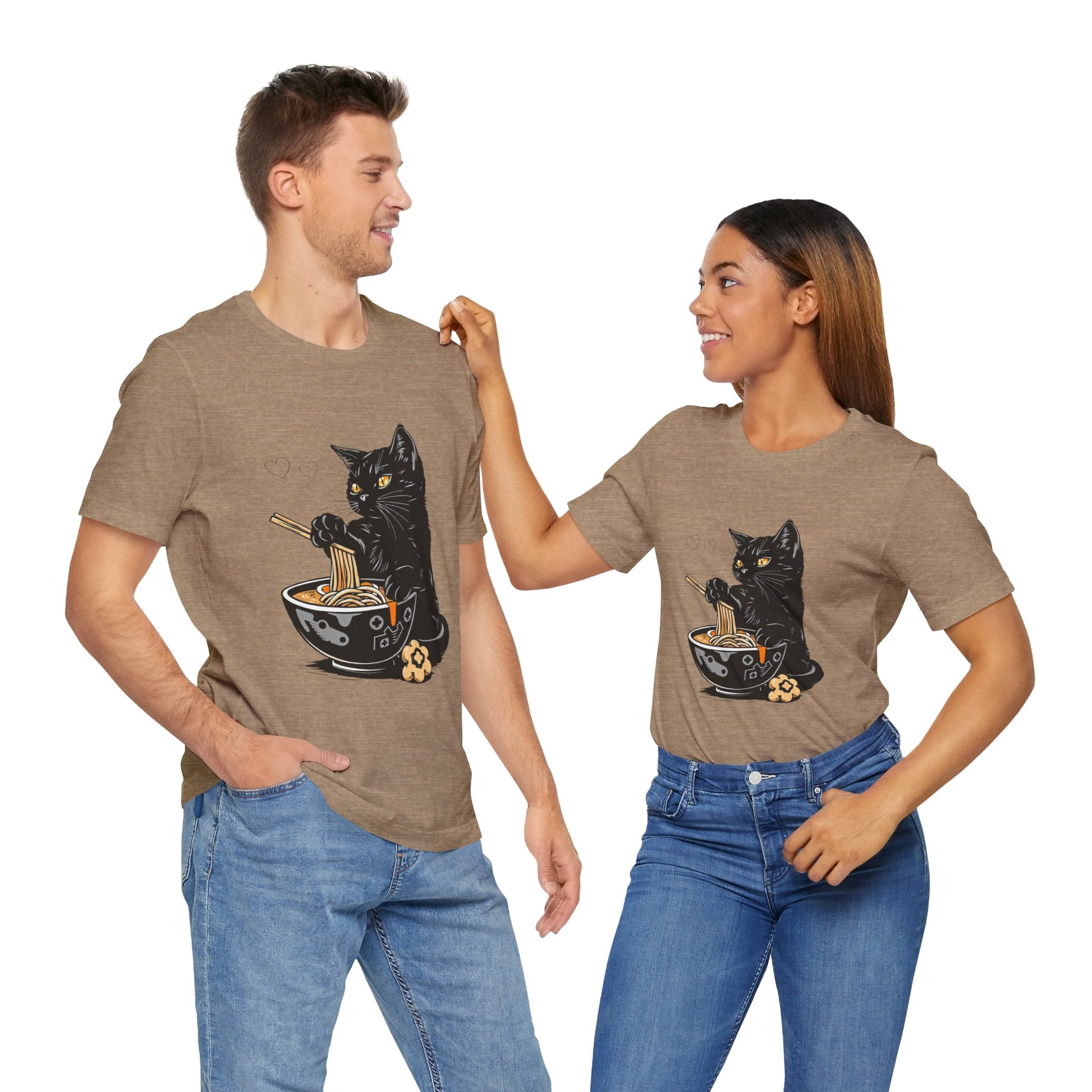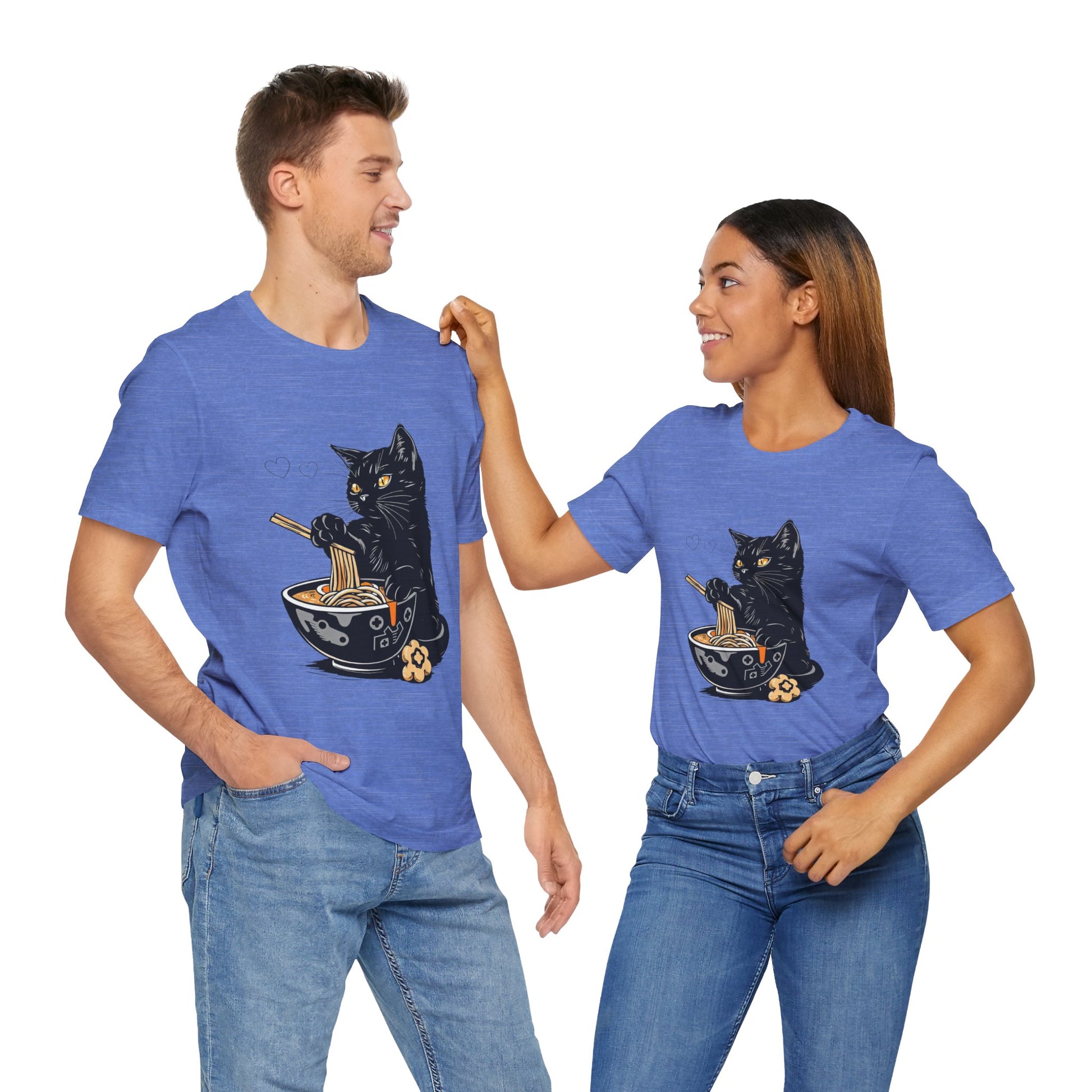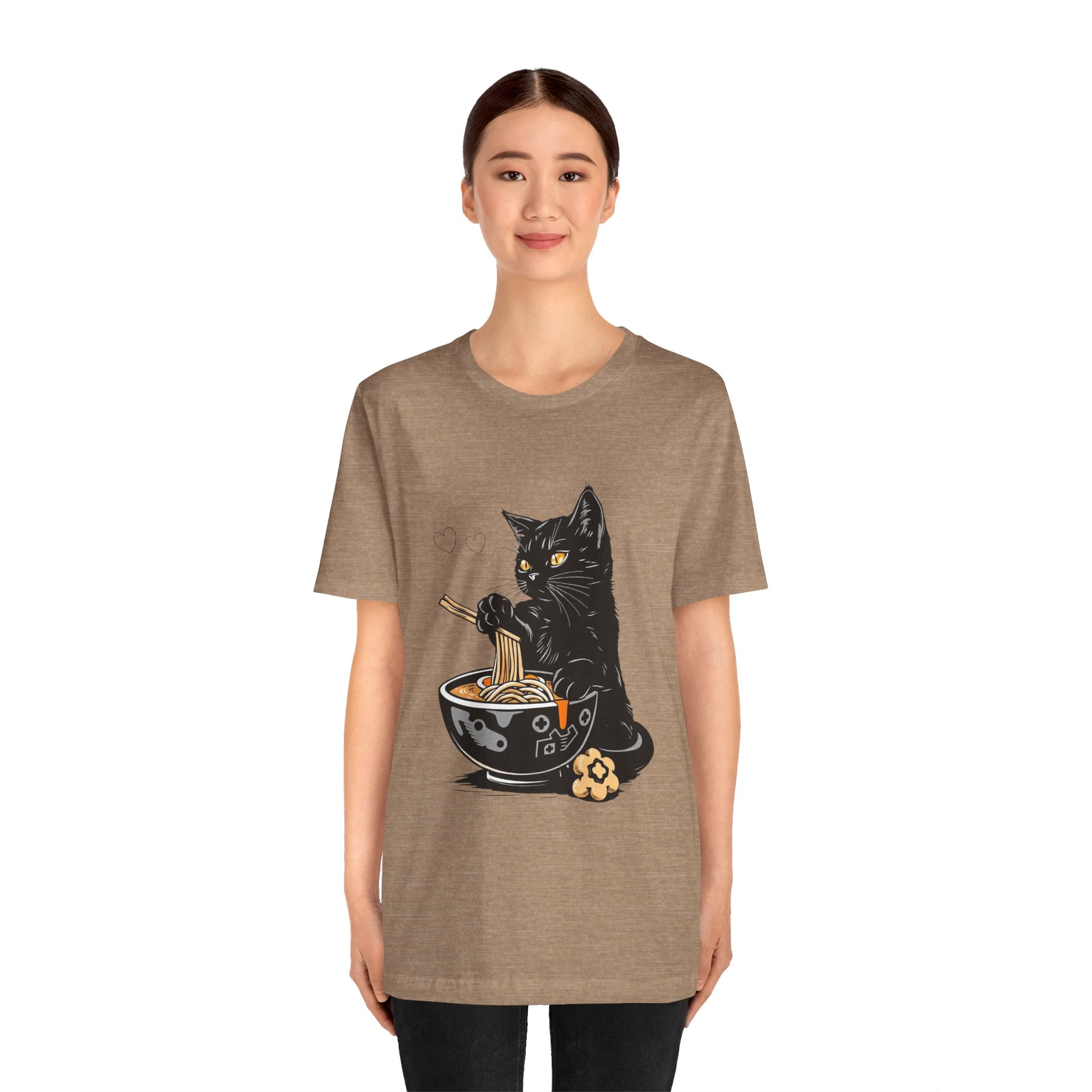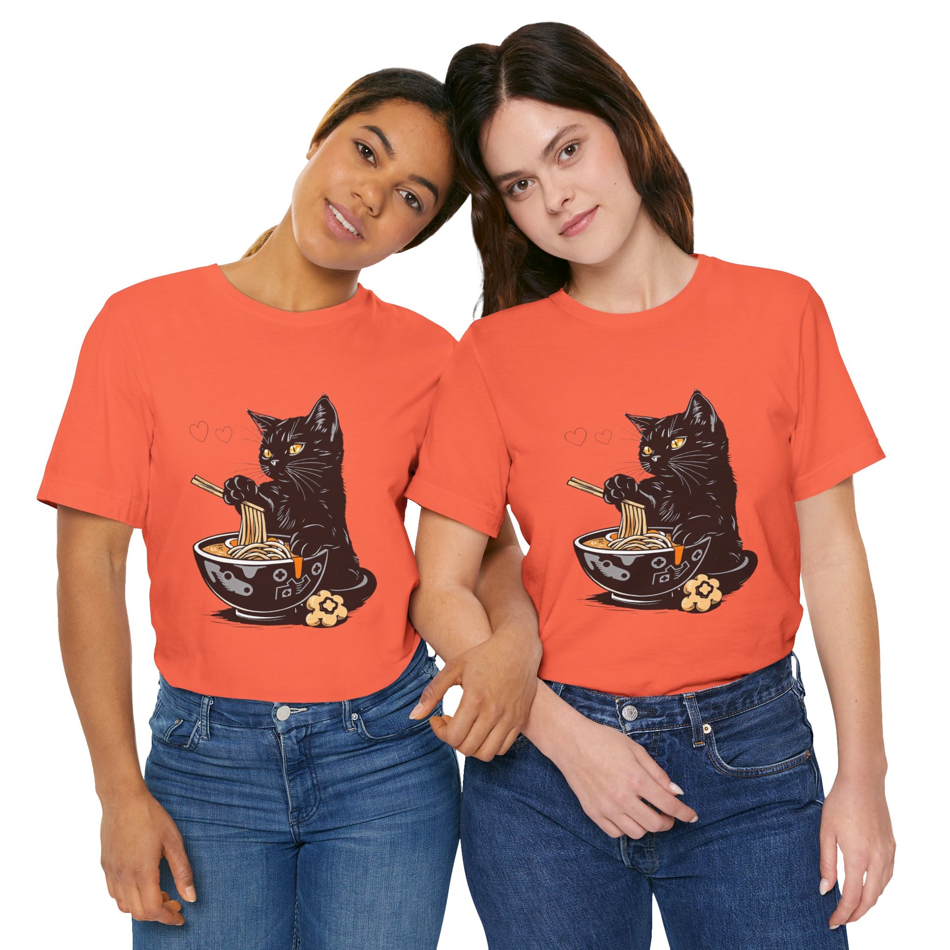 This vibrant Unisex Jersey Short Sleeve Tee is perfect for anyone who wants to express their love for cats and noodles in a fun way! Featuring an adorable graphic of a black cat with a bowl of noodles, this tee adds a playful touch to any outfit and is great for casual outings, cafes, or cozy nights in. Ideal for cat lovers and food enthusiasts alike, this shirt is a fantastic gift for birthdays, cat adoption days, or just to brighten someone’s day. Made from breathable, lightweight fabric, it’s suitable for year-round wear, ensuring you stay comfortable while showcasing your unique style.