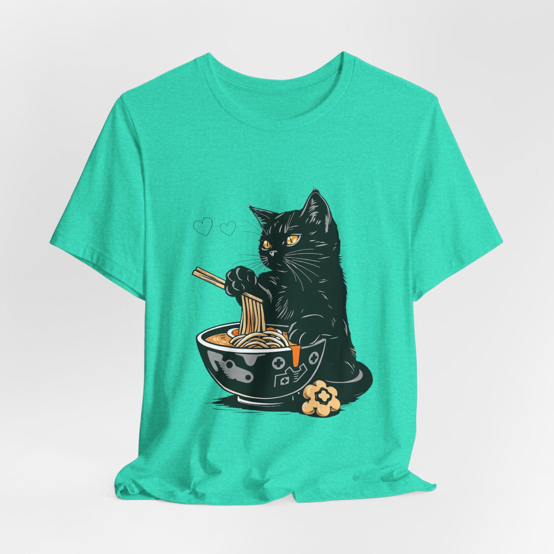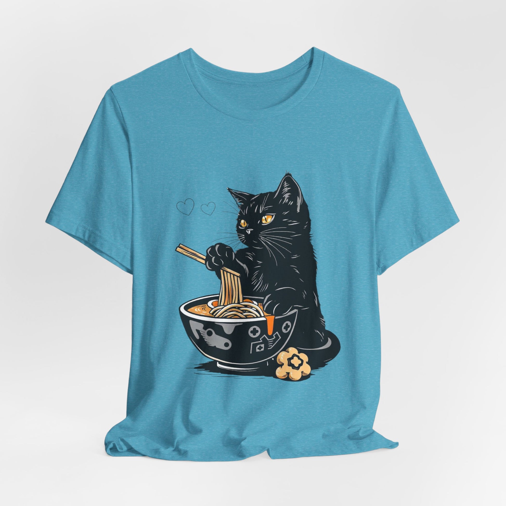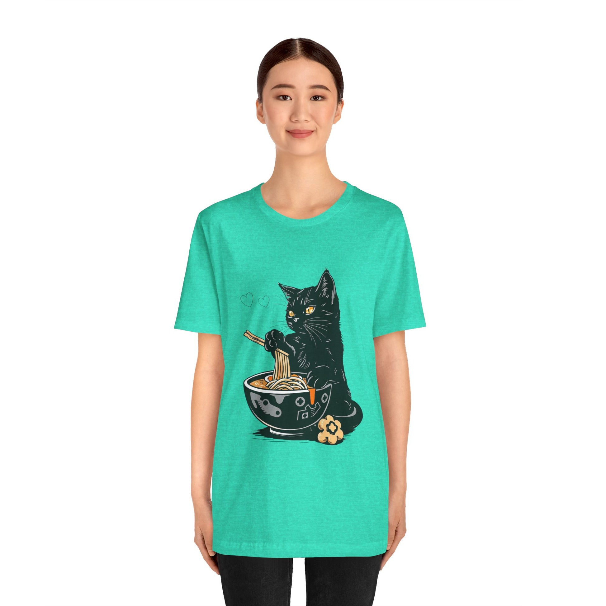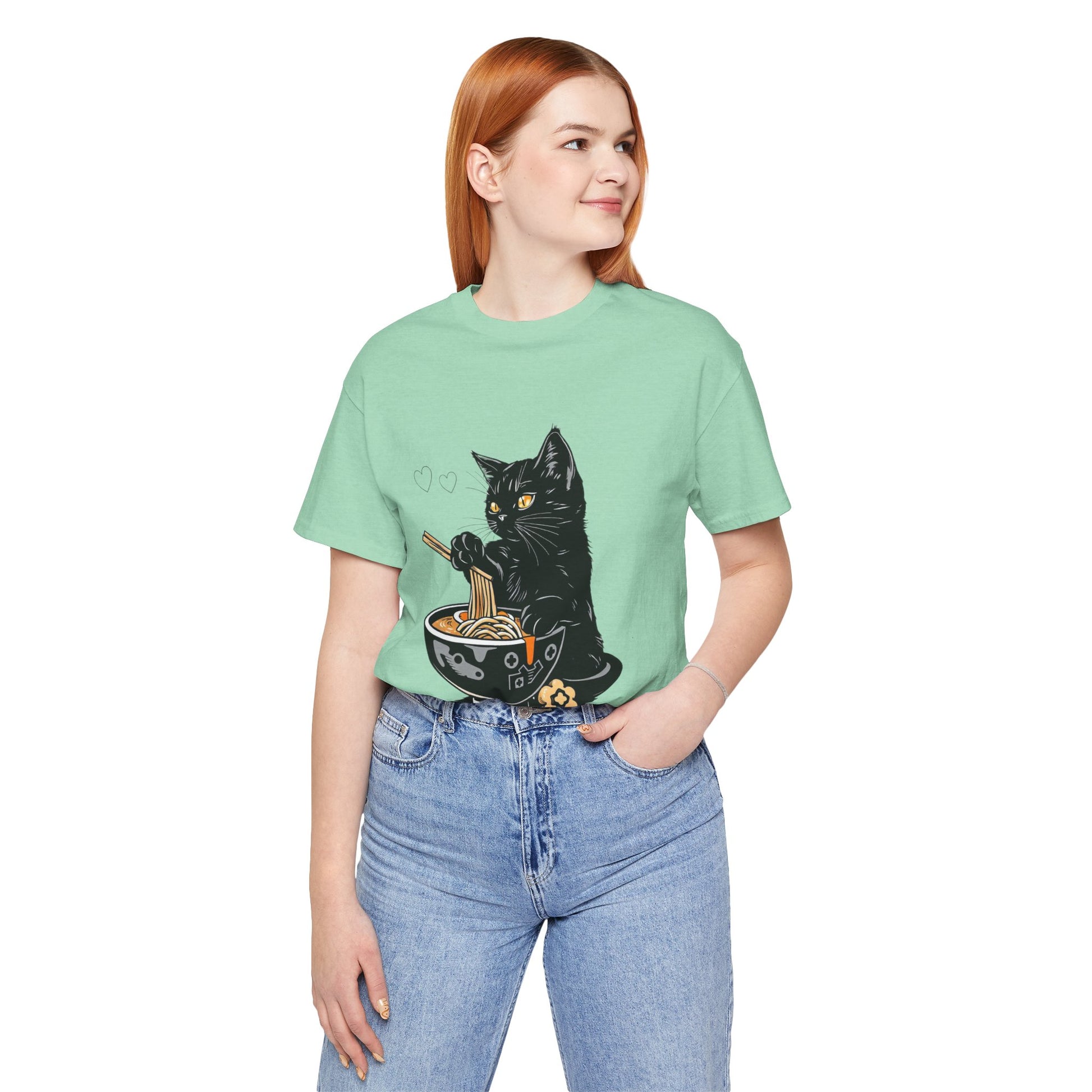This vibrant Unisex Jersey Short Sleeve Tee is perfect for anyone who wants to express their love for cats and noodles in a fun way! Featuring an adorable graphic of a black cat with a bowl of noodles, this tee adds a playful touch to any outfit and is great for casual outings, cafes, or cozy nights in. Ideal for cat lovers and food enthusiasts alike, this shirt is a fantastic gift for birthdays, cat adoption days, or just to brighten someone’s day. Made from breathable, lightweight fabric, it’s suitable for year-round wear, ensuring you stay comfortable while showcasing your unique style.