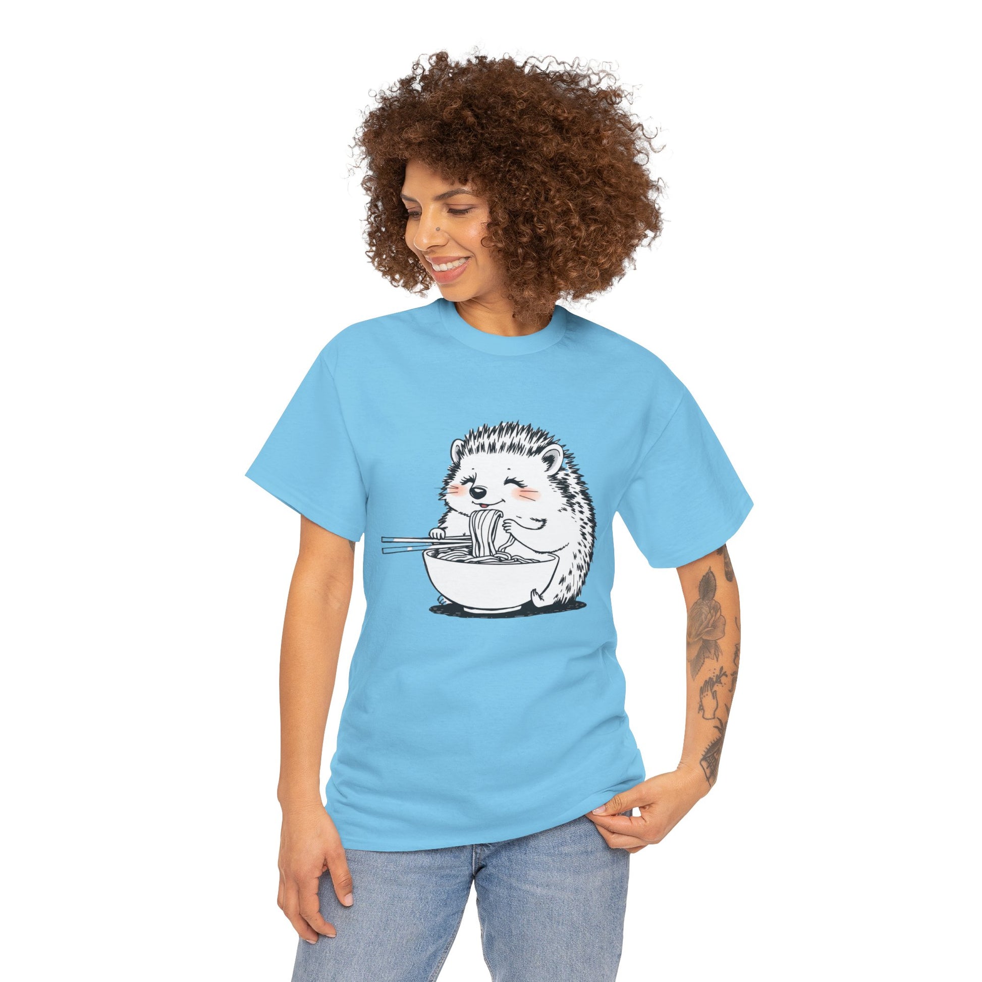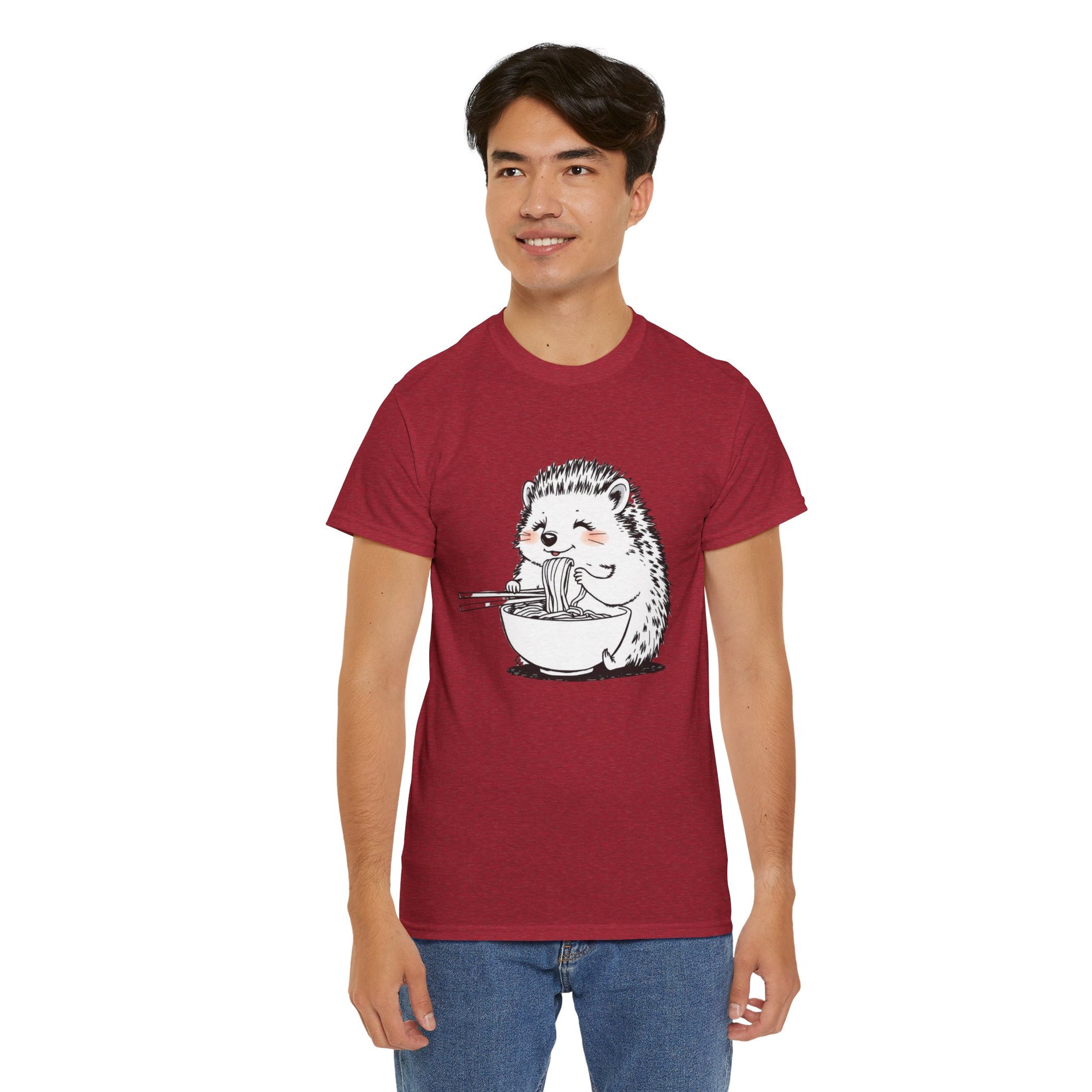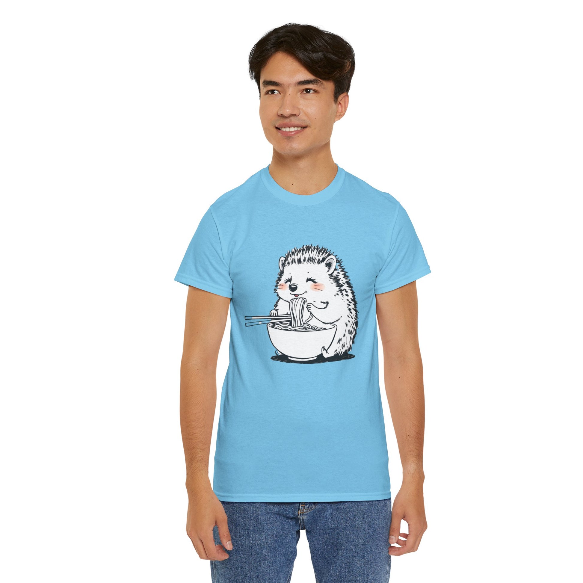 Noodle Hedgehog Shirt, Ramen HedgehogT-Shirt, Foodie Lover Shirts, Black Hedgehog Noodle T-Shirts, Retro HedgehogTees, Hedgehog Lover Sweatshirts, Black Hedgehog Tee Cute Hedgehog Eating Noodles Unisex Heavy Cotton Tee