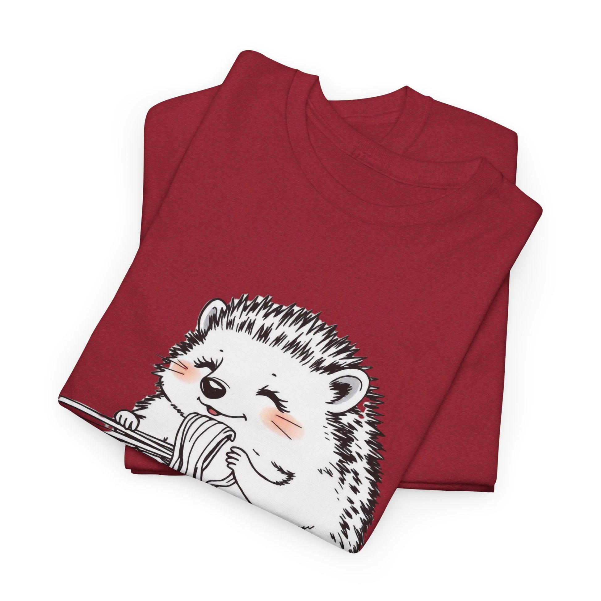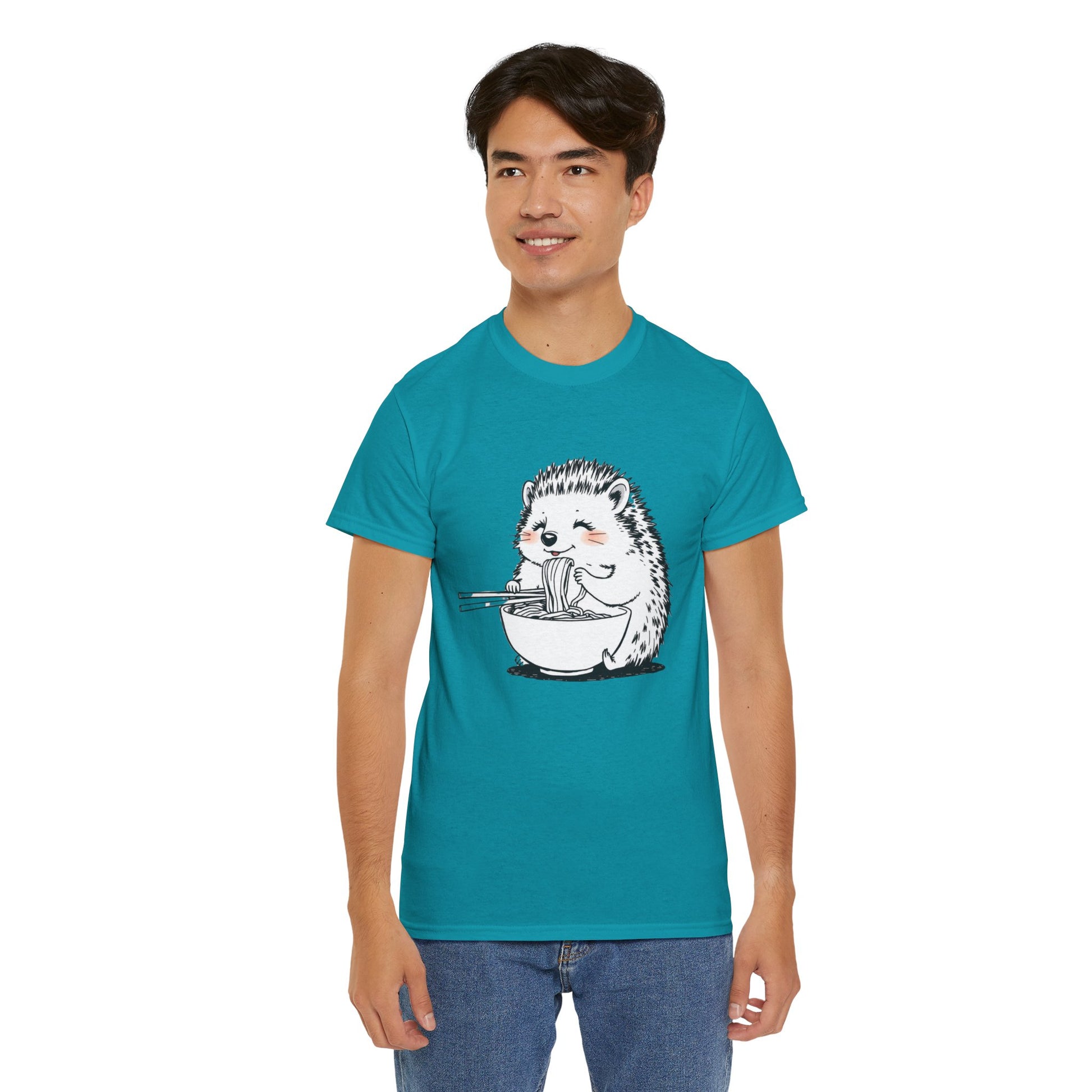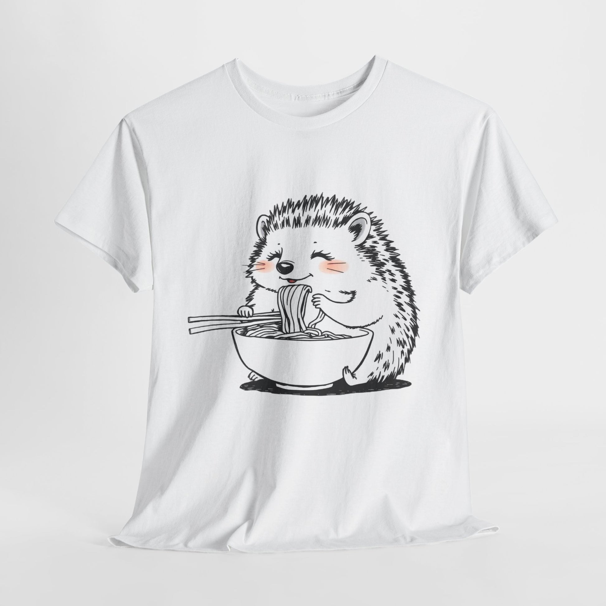 Noodle Hedgehog Shirt, Ramen HedgehogT-Shirt, Foodie Lover Shirts, Black Hedgehog Noodle T-Shirts, Retro HedgehogTees, Hedgehog Lover Sweatshirts, Black Hedgehog Tee Cute Hedgehog Eating Noodles Unisex Heavy Cotton Tee