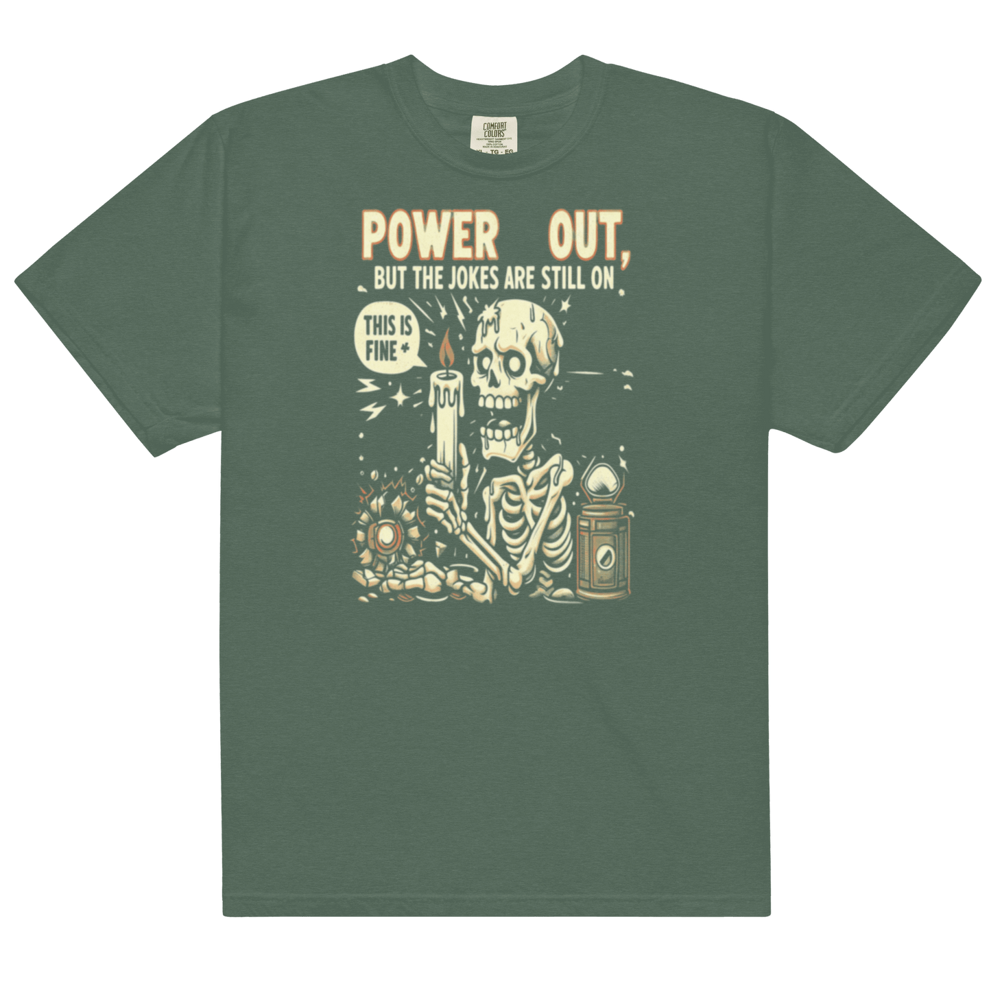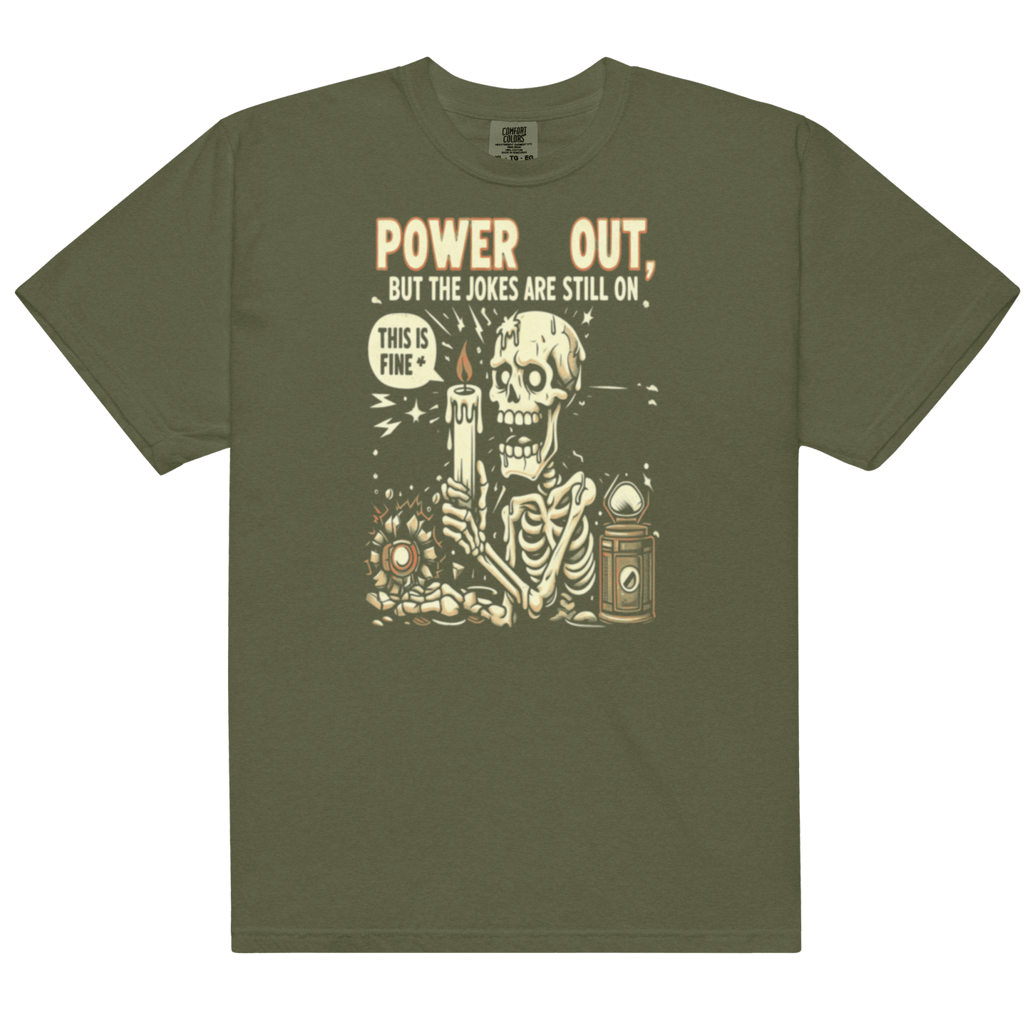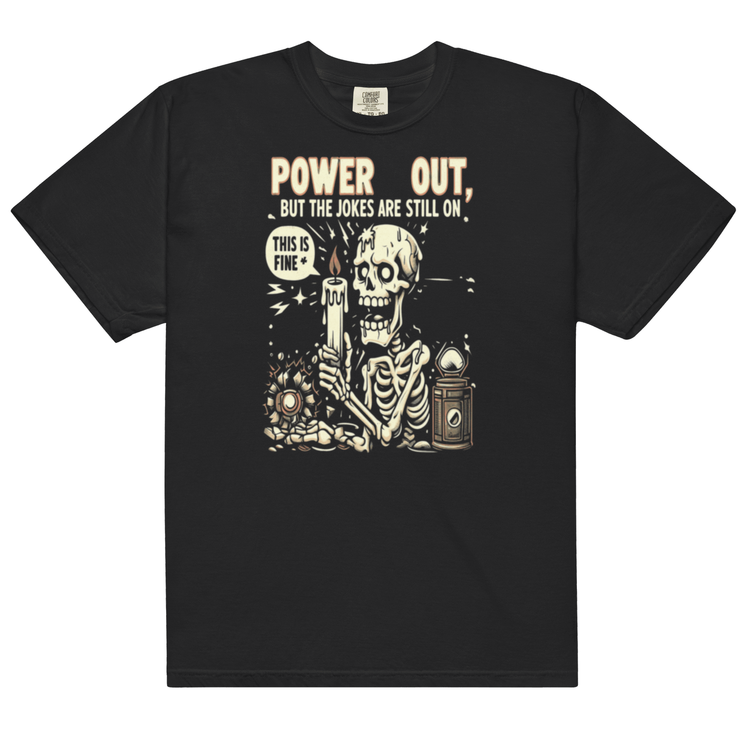 Unisex garment-dyed heavyweight t-shirt Power Outage Sarcasm T-Shirt - 'This Is Fine' Power Outage Meme Tee | Dark Humor Apparel